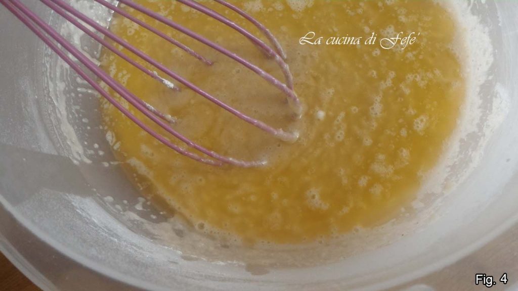 In einer anderen Schüssel mischen Sie das Eiweiß ungepeitscht mit der mittlerweile kalten geschmolzenen Butter und rühren mit einem Handbesen (Abb. 4).