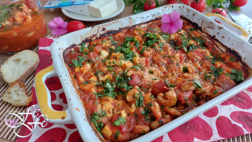 Wer mir auf den sozialen Medien gefolgt ist, weiß, dass ich diesen Sommer meinen Urlaub in Griechenland, genauer gesagt auf Kreta, einer wunderbaren Insel voller Geschichte und unberührter, bezaubernder Orte, verbracht habe! Um ehrlich zu sein, sind die griechischen Inseln zu unserem Lieblingsreiseziel geworden, so dass mein Mann und ich kurz vor der Pandemie auch auf Santorin waren, eine viel kleinere und reizvolle Insel. Durch ihre sehr einfache und kostengünstige Küche habe ich typische Gerichte entdeckt, die ich zu Hause nachkochen wollte, um sie mit euch zu teilen. Die Garnelen Saganaki gehören genau zu dieser Tradition! Und wenn ihr, wie ich, Liebhaber der griechischen Gastronomie seid, müsst ihr sie unbedingt probieren! Das Rezept basiert auf frischen Garnelen oder Krevetten, obwohl auch gefrorene verwendet werden könnten, was ich jedoch nicht empfehle, da dadurch der authentische Geschmack dieses köstlichen Gerichts verloren gehen würde! Die Zugabe von Feta-Käse, den die Griechen sehr häufig verwenden und der für viele ungewöhnlich erscheinen mag, da er mit Fisch kombiniert wird, ist jedoch der Beweis, dass solche Kombinationen möglich sind und wirklich köstliche Ergebnisse liefern! Tatsächlich ist der Kontrast zwischen diesen beiden Zutaten beträchtlich, aber ich denke, er ist auch exquisit perfekt, da die Süße der Krustentiere überraschend gut die Salzigkeit dieses lokalen Käses umarmt. Und wie ich bereits erwähnte, sind die Zutaten der griechischen Küche recht einfach, so dass ihr diesem Meeresfrüchtehauptgericht nur einige frische Kirschtomaten, eine Zwiebel, viel Petersilie und Olivenöl extra vergine hinzufügen müsst, und das Gericht ist fertig! Ihr erhaltet eine Soße, die perfekt mit Brot aufgenommen werden kann, und die, wenn gewünscht, auch als Sauce für Spaghetti verwendet werden kann, indem man sie mit ein paar Schöpfkellen Kochwasser verlängert! Ein ganz einfaches Rezept mit großem Endergebnis sowohl im Geschmack als auch in der Präsentation.