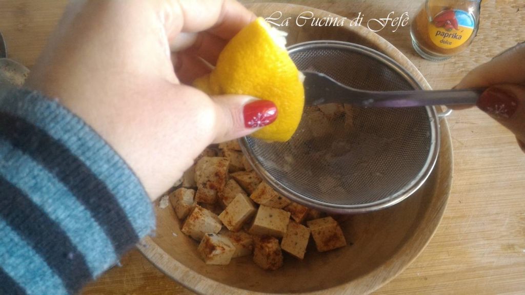 🟣 * Ich habe den Kräutertofu bei Lidl Italien gekauft, aber falls du ihn nicht finden kannst, funktioniert auch naturbelassener Tofu. In diesem Fall füge der Marinade eine Mischung aus aromatischen Kräutern nach Belieben hinzu, wie Basilikum, Petersilie, Minze und Rosmarin.