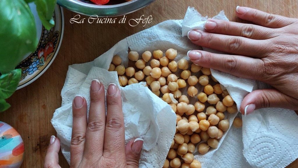 Tupfe sie mit reichlich Küchenpapier ab, indem du sie wiederholt abreibst, um die Häute zu entfernen, die sie bedecken.