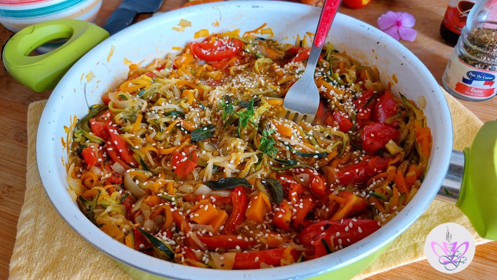 Et voilà… die Zucchini- und Karottennudeln in der Pfanne sind bereit, genossen zu werden!