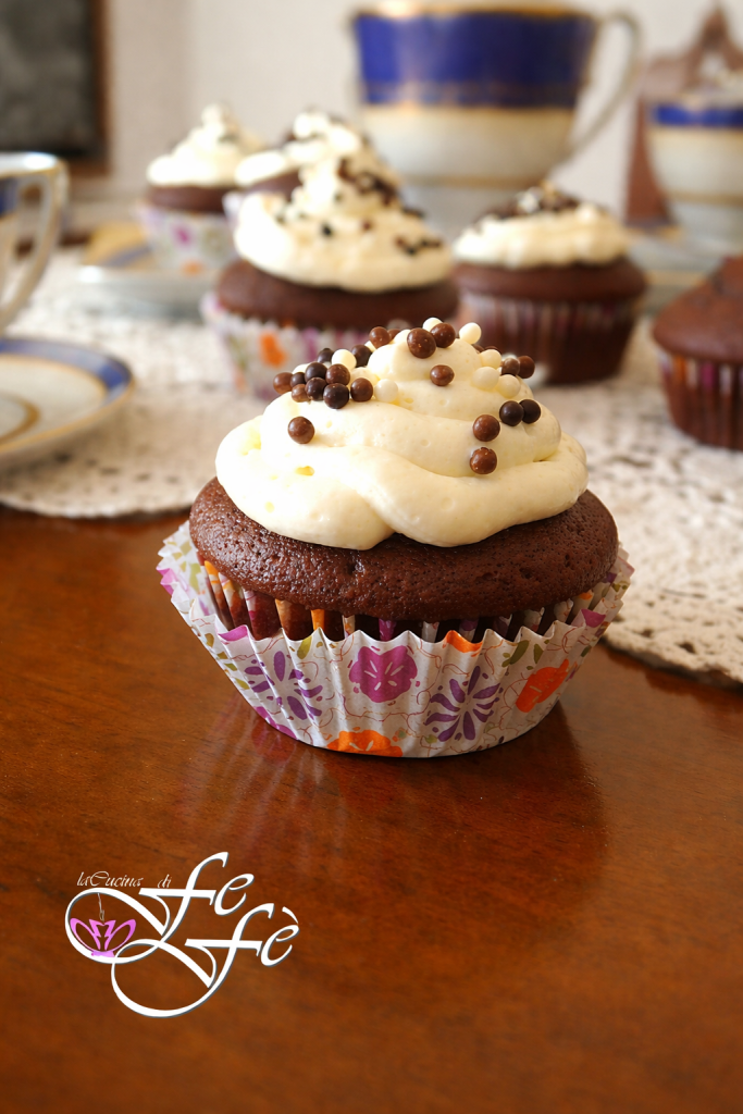 Ich habe schon immer eine Leidenschaft für die berühmten Cupcakes, die unverkennbaren und beliebten kleinen Küchlein amerikanischer Herkunft. Wörtlich heißen sie „Torte in der Tasse“ und begleiten oft den Tee am Nachmittag, doch inzwischen, da sie auch in Italien verbreitet sind, werden sie für viele andere festliche Anlässe gebacken. Wer hat sie nicht mindestens einmal zubereitet? Ich gebe zu, ich habe mich oft an diesen kleinen köstlichen Snacks gütlich getan! Vor einiger Zeit habe ich sie mit einer sehr zarten Zitronencreme zubereitet, die großen Anklang fand — das Rezept stelle ich bald online. Ich plane auch, sie mit Roter Bete herzustellen, für einen erfolgreichen „Red Velvet“-Effekt! Die heute vorgestellten sind jedoch phänomenal: ein Kakao-Boden, weich wie eine Wolke, bedeckt mit einem samtigen und umhüllenden Frosting aus weißer Schokolade, das einen schönen Kontrast zur Bitterkeit des Kakaos bildet. Bissen für Bissen gibt es nichts Befriedigenderes! Sie sind wirklich sehr einfach zuzubereiten und in Kombination mit anderen Cupcakes in verschiedenen Geschmäckern und Farben ergeben sie einen sehr eindrucksvollen Effekt! Außerdem sind sie glutenfrei, also perfekt für Zöliakie-Betroffene! Worauf wartet ihr?