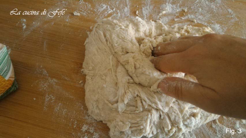 Gebt den Teig auf eine leicht bemehlte Arbeitsfläche und knetet ihn mit den Händen etwa 15 Minuten weiter (Abb. 3).