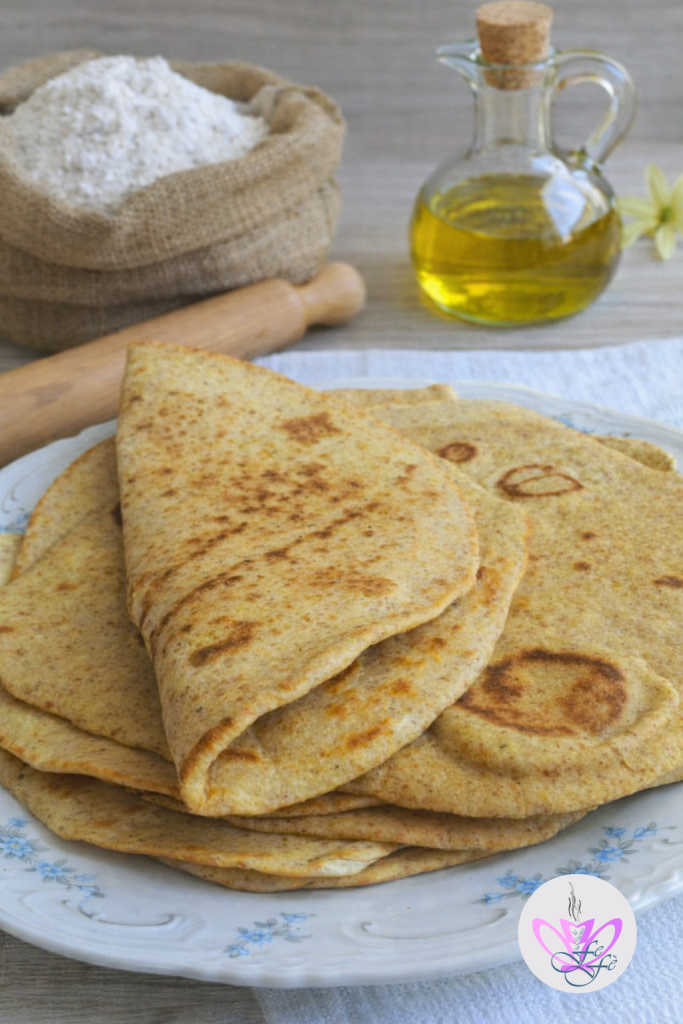Die Piadina ist ein einfaches Gericht aus der romagnolischen Küche mit sehr alten Ursprüngen. Sie wird aus wenigen, alltäglichen Zutaten zubereitet, die man meist zuhause hat: Mehl, Wasser und entweder Schmalz oder extra natives Olivenöl. Ohne Hefe benötigt sie keine langen Ruhezeiten und wird nur wenige Minuten auf einer heißen Platte oder in einer sehr heißen Pfanne gebacken. Das Ergebnis ist großartig, denn die Piadina lässt sich mit allem füllen, was euch einfällt, und wird so zu eurem Allround-Gericht! Du kannst sie als Hauptgericht für ein lockeres Mittagessen servieren, als Brot zu Käse und Wurst verwenden oder als appetitanregende Vorspeise für eure Sommerabende anbieten. Mein Rezept verwendet einen Anteil Vollkornmehl für einen noch rustikaleren Geschmack und setzt auf Olivenöl statt Schmalz, damit sie besser verdaulich ist. Probier sie einfach aus! Schon pur, heiß und knusprig, ist sie ein Genuss; in den nächsten Tagen gebe ich dir ein paar Tipps für eine wirklich überraschende Zubereitung, sowohl geschmacklich als auch bei der Präsentation. Notiere dir zuerst die Mengen und den Ablauf, um Schritt für Schritt echte, selbstgemachte Piadine zu erhalten, die einfach, schnell und vor allem ehrlich sind! Hast du sie einmal selbst gemacht, wirst du sie nicht mehr fertig kaufen wollen!