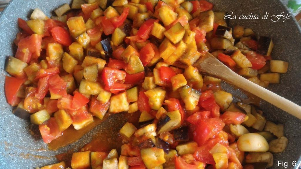 • In der Zwischenzeit die Scialatielli in einem großen Topf in reichlich Salzwasser kochen. Wenn die Sauce zu trocken wird, fügen Sie eine Kelle Kochwasser hinzu. Geben Sie schließlich auch den Schwertfisch hinzu und beenden Sie das Kochen für weitere 5 Minuten (Abb. 7).