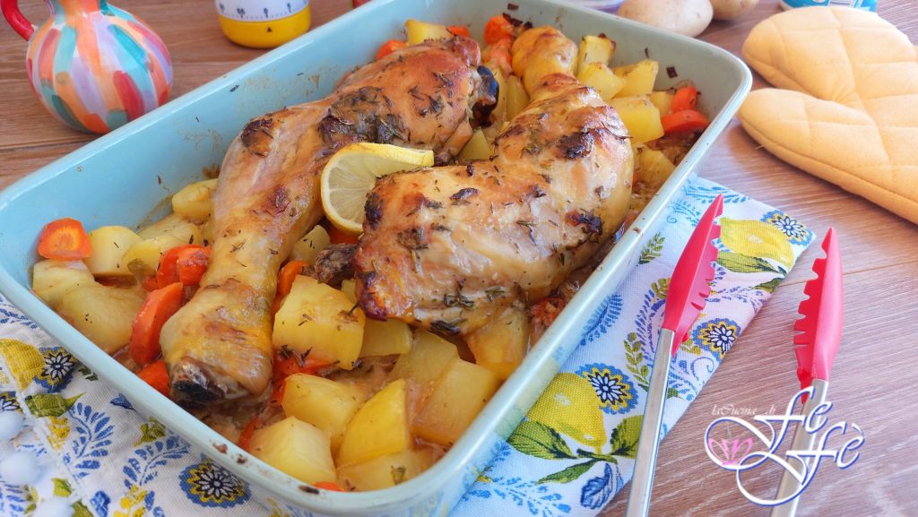 Ich muss ehrlich sein, ich bin kein großer Fan von weißem Fleisch, Huhn mag ich nicht besonders. Deshalb könnt ihr euch vorstellen, wie bedeutend es ist, euch ein Rezept vorzuschlagen, in dem es der unbestrittene Protagonist ist! Dieses Ofenhuhn ist nicht wie die, die ihr bisher zubereitet habt, es hat das gewisse Etwas, denn trotz der Zubereitungsart bleibt es nicht trocken und zäh, sondern genau das Gegenteil! Es wird im Mund zergehen und sein Fleisch wird zart und saftig sein! Am Gaumen entdeckt man einen wirklich überraschend aromatischen Geschmack, dank nicht nur der hinzugefügten Kräuter und Gewürze in der Marinade, sondern auch der Joghurt-Honig-Sauce. Und hier liegt die Neuheit: Die Sauce wird nicht zum Servieren des Huhns gereicht, sondern kurz vor dem Backen hinzugefügt, wodurch die richtige Feuchtigkeit und Zartheit von Anfang an garantiert wird! Das zusammen mit dem Huhn gebratene Gemüse wird dann das perfekte Krönchen dieses ungewöhnlichen und super saftigen Hauptgerichts sein! Es wird für die ganze Familie geeignet sein, da es vollständig, nahrhaft und leicht verdaulich ist, und ihr könnt es sowohl für den täglichen Tisch als auch für einen besonderen Anlass vorschlagen. Ihr werdet mit wenigen und einfachen Schritten glänzen!