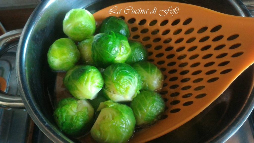 Koche den Rosenkohl in reichlich gesalzenem Wasser ca. 10′ ab dem Kochen oder bis sie weich genug sind.