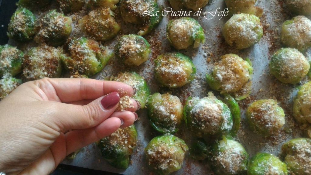 Beende mit etwas Semmelbrösel für zusätzliche Knusprigkeit beim Überbacken. Im vorgeheizten Ofen bei 190°C für 25′ oder bis sie schön goldbraun sind.