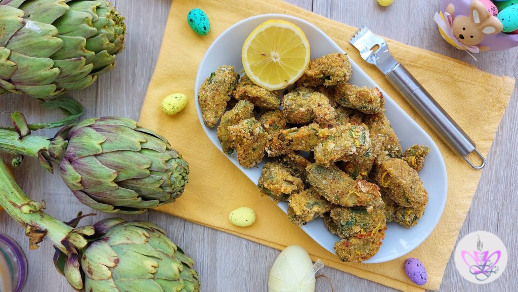 Artischocken sind eines der Wintergemüse, die ich am meisten liebe – und das liegt nicht nur am Geschmack, sondern an ihrer Vielseitigkeit! Man kann sie auf unzählige Arten zubereiten; es gibt legendäre regionale Rezepte, die ich immer wieder nachmache, weil sie so gut sind, wie zum Beispiel gefüllte Artischocken auf Sizilianische Art oder Artischocken nach römischer Art, nur um zwei Beispiele zu nennen. Heute zeige ich dir, wie du sie in Keile schneidest, sie dann panierst und im Ofen überbackst! Sie eignen sich perfekt als Beilage oder als fingerfood-vorspeise im vegetarischen Stil, ideal für Feste oder besondere Anlässe!