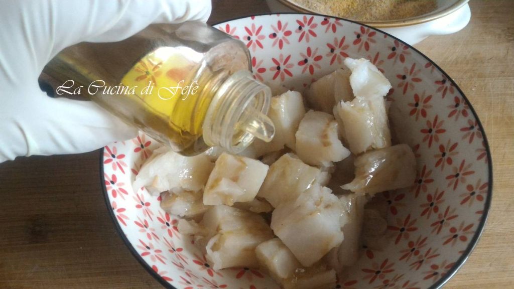 • Machen Sie dasselbe mit den Kabeljauwürfeln.