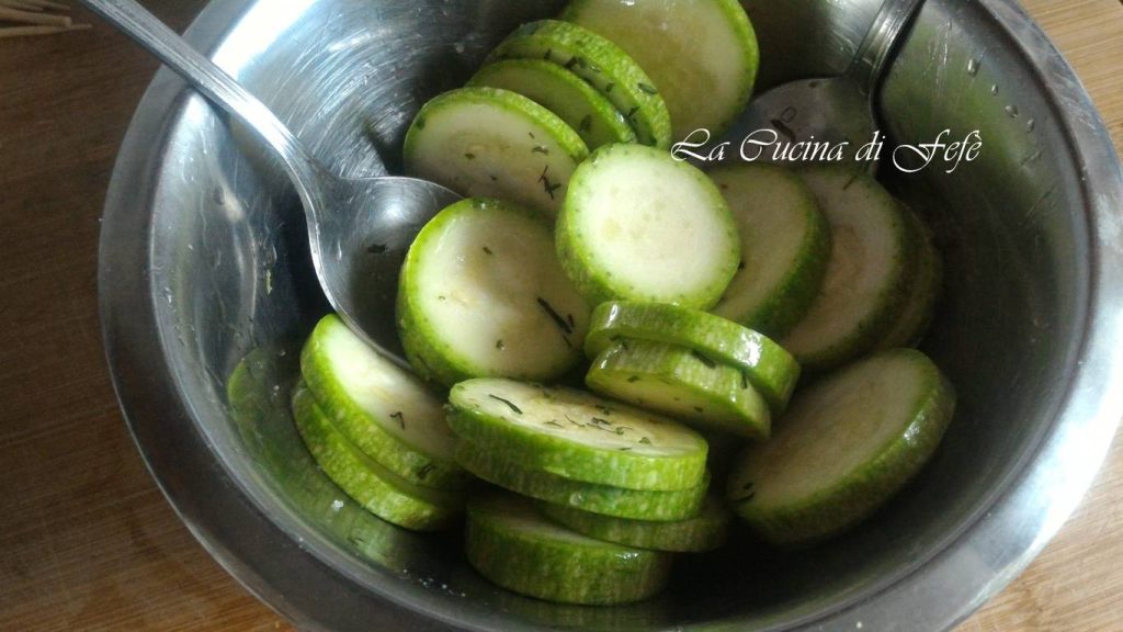 • Machen Sie dasselbe in einer anderen Schüssel mit den Zucchinischeiben.