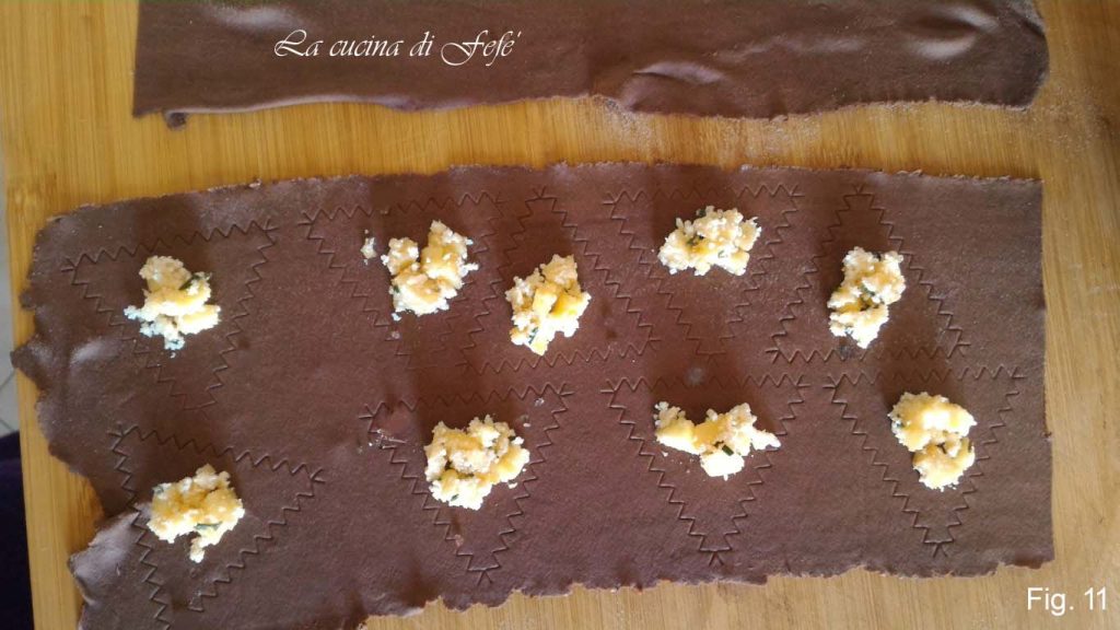 Es lässt sich nicht leugnen, hausgemachte Pasta zuzubereiten, ist zu einer echten Leidenschaft geworden. Ich bekomme immer mehr Geschmack daran und liebe alle Varianten, die diese Art der Zubereitung dem Gaumen bieten kann. Heute teile ich daher gerne mit Ihnen das Rezept für wirklich einzigartige und außergewöhnliche Ravioli, hergestellt aus Hartweizengrieß und Kakao. Die Füllung wird Sie noch mehr überraschen, da sie im Wesentlichen aus Red Delicious Äpfeln besteht, mit knusprigem, aromatischem und süßem Fruchtfleisch, im Kontrast zum stark würzigen Geschmack des gereiften Pecorino. Eine Kombination, die Ihre Gäste aufgrund ihrer Besonderheit überraschen wird. Es wird also das ideale Rezept für festliche Anlässe, Familiensonntage und besondere Gelegenheiten sein. Außerdem ist der Teig eifrei, was für eine unvorstellbare Leichtigkeit sorgt! Um das vollständige Gericht zu sehen, haben Sie etwas Geduld, ich hoffe, es bald auf dem Blog zu veröffentlichen. Speichern Sie in der Zwischenzeit das Rezept mit allen Fotos der Schritte, und ich hoffe, es gefällt Ihnen genauso gut wie mir!