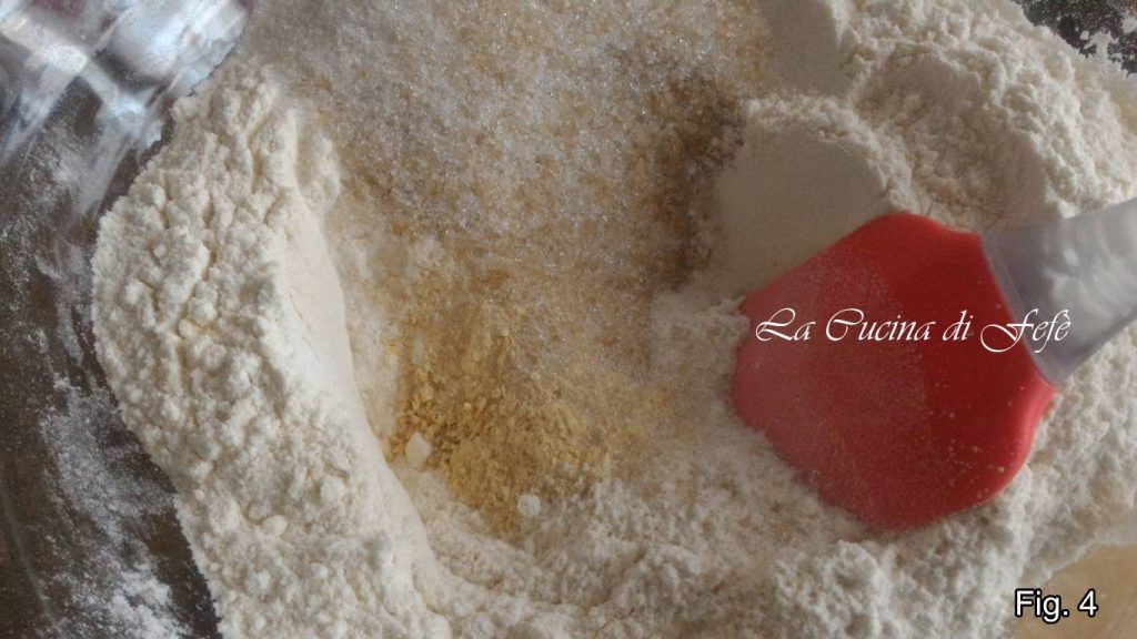 Rührt zügig, bis ihr eine weiche und feuchte Masse erhaltet. Deckt sie mit Folie ab und lasst sie 20′ im Kühlschrank ruhen.