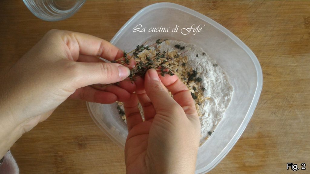 In einer großen Schüssel das Mehl Typ 2 sieben, dann die Haferflocken hinzufügen und mischen (Abb. 1).