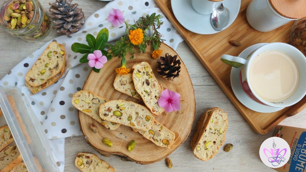 Wenn Sie mir auf sozialen Medien gefolgt sind, wissen Sie, dass ich kürzlich ein Rezept ausprobiert habe, das vom Aussehen und der Knusprigkeit her an die legendären Cantucci erinnert! Ich habe sie Blättchen genannt und sie sind noch gesünder, da sie ohne Butter sind. Sie sind wirklich fantastisch als Snack am Nachmittag oder nach dem Essen. Letzte Nacht hat mein Mann sie auch in Zibibbo getunkt, ein wahrer Genuss! Für diejenigen, die es wünschen, ist es möglich, das Eiweiß durch das Wasser von Kichererbsen, die berühmte Aquafaba, zu ersetzen und so vegane Blättchen herzustellen. Ich habe sie mit Haselnüssen und Pistazien bereichert, aber nichts hindert daran, sie auch mit Mandeln, Pinienkernen oder Walnüssen herzustellen. Sicherlich, angesichts des Erfolgs, den sie hatten, werde ich Ihnen bald eine noch reichhaltigere Version davon vorschlagen, also verpassen Sie es nicht!