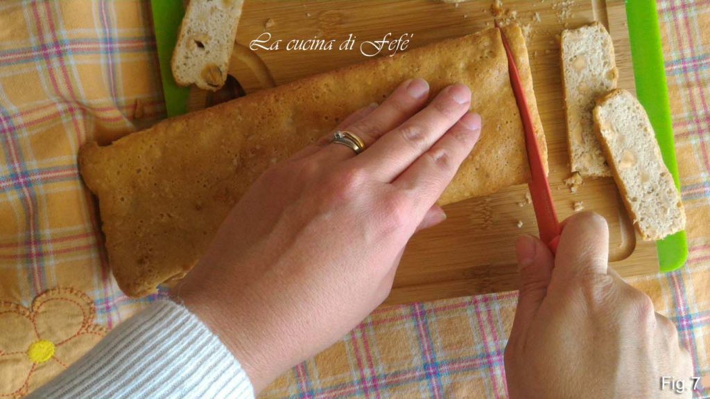 Die Scheiben auf ein mit Backpapier ausgelegtes Backblech legen und erneut bei 150°C für 15 Minuten backen, dann umdrehen und weitere 3 Minuten backen (Abb. 8).