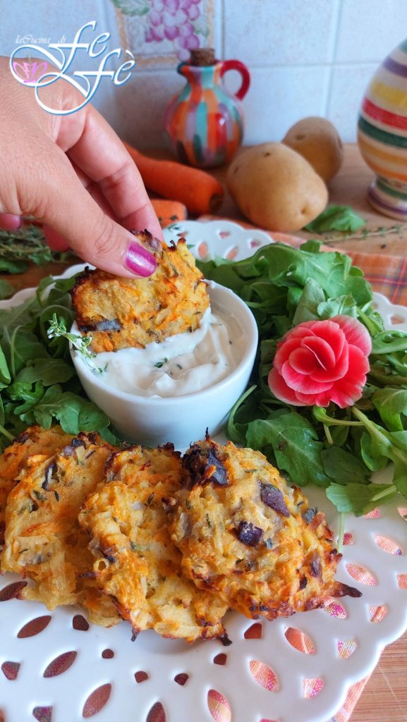 Letztes Jahr erinnern Sie sich wahrscheinlich an das schöne Rezept, das auf allen sozialen Netzwerken für vegane koreanische Pfannkuchen vorgeschlagen wurde, eine alternative und super gesunde Art, Gemüse zu genießen und ein leichtes und leckeres zweites Gericht auf den Tisch zu bringen. Heute präsentiere ich sie Ihnen in ihrer klassischen Version mit Kartoffeln und Karotten, aber im Ofen statt in der Pfanne gebacken und unter Verwendung von Reismehl anstelle von Weizenmehl. Außerdem sind sie so perfekt für Menschen, die glutenintolerant sind, was nicht schaden kann, oder? Wenn Sie sie noch nicht kennen, müssen Sie sie unbedingt ausprobieren! Diese kleinen Pfannkuchen werden Sie beim ersten Bissen erobern und Sie können sie sowohl als Abendessenersatz in Kombination mit einem saisonalen Salat als auch als leckere Fingerfood-Begleitung zum Aperitif oder zum Eintauchen in eine Art Joghurtsauce wie ich servieren! Sie werden wirklich unwiderstehlich sein!