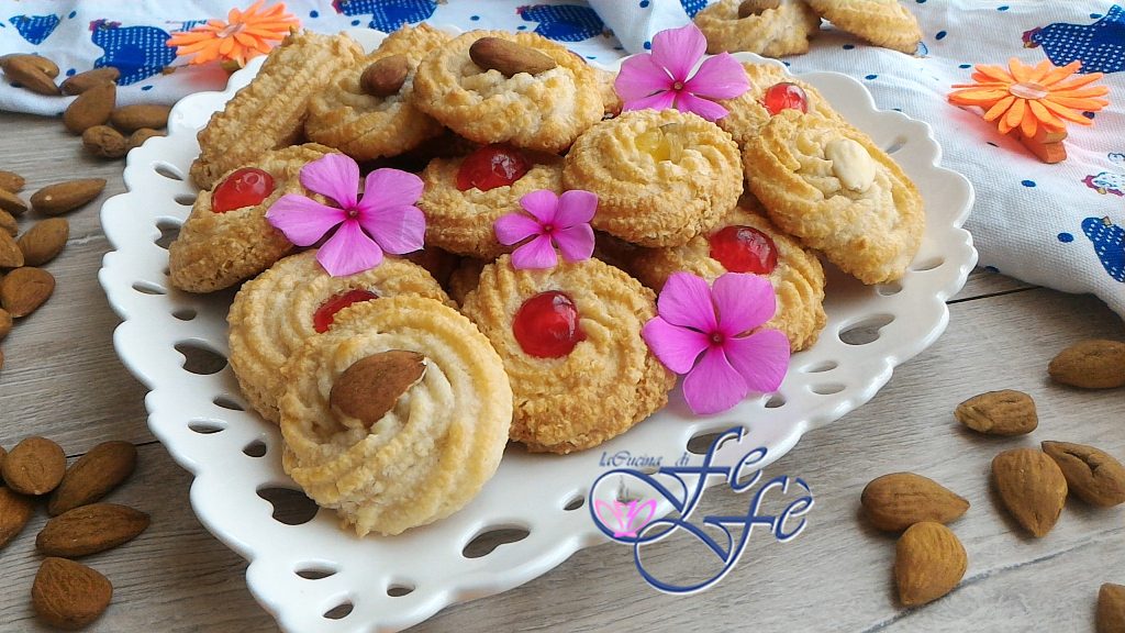 In letzter Zeit, als ich meine Blog-Rezepte aus meiner geliebten Heimat durchstöberte, fiel mir auf, dass ich diese Mandelpaste-Plätzchen, also wirklich köstliche Kekse auf Mandelbasis, noch nicht vorgestellt hatte! Es ist unglaublich, dass ich das Rezept noch nicht veröffentlicht hatte, obwohl ich sie bereits letztes Jahr zubereitet hatte! Aber dann weiß man ja, im Kopf entstehen viele andere Ideen, und was man geplant hatte zu tun, gerät oft in Vergessenheit. Also, hier bin ich, um euch endlich diese wunderbaren traditionellen Desserts der sizilianischen Konditorei anzubieten! Um ehrlich zu sein, werden diese Süßigkeiten inzwischen auch in anderen Regionen Süditaliens und in vielen verschiedenen Formen hergestellt. Dennoch sind die echten und originalen die Mandelpaste-Hörnchen mit einer köstlichen kandierten Kirsche oben drauf oder in der Version mit einer ungeschälten ganzen Mandel. Sie sind sehr einfach zuzubereiten, man muss nur alle Tipps im Rezept befolgen und ein bisschen Übung mit der Spritztüte haben, um wirklich unwiderstehliche Kekse zu backen! Sie sind perfekt, um sie mit Tee zu genießen oder als Dessert nach einer Mahlzeit mit Kaffee! Außerdem sind sie auch glutenfrei, probiert sie aus, ihr werdet euch verlieben!