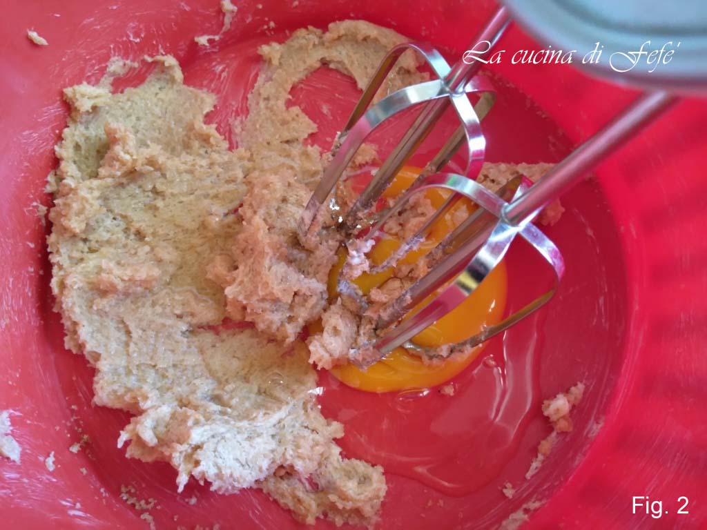 Fügen Sie dann ein Ei nach dem anderen hinzu und arbeiten Sie weiter mit den elektrischen Schneebesen (Abb. 2).