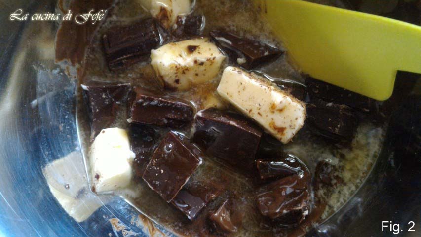 In einem Topf die Schokolade im Wasserbad zusammen mit der Hälfte der Butter schmelzen lassen (Abb. 2).