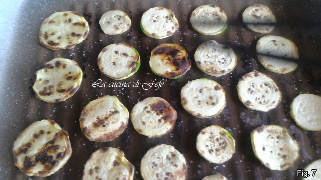 Während die Pasta auf Raumtemperatur abkühlt, grillen Sie die in Scheiben geschnittenen Zucchini auf einem heißen Grill jeweils 3 Minuten pro Seite.