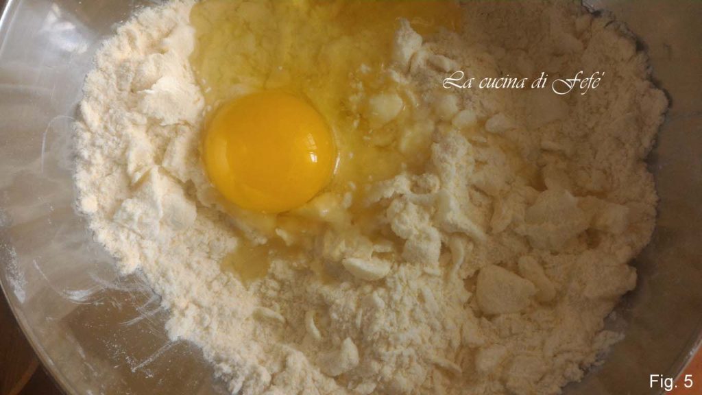 • In der Küchenmaschine oder in einer großen Schüssel die beiden Mehlsorten mit der kalten Butter in Stückchen, direkt aus dem Kühlschrank, verarbeiten (Abb. 3).