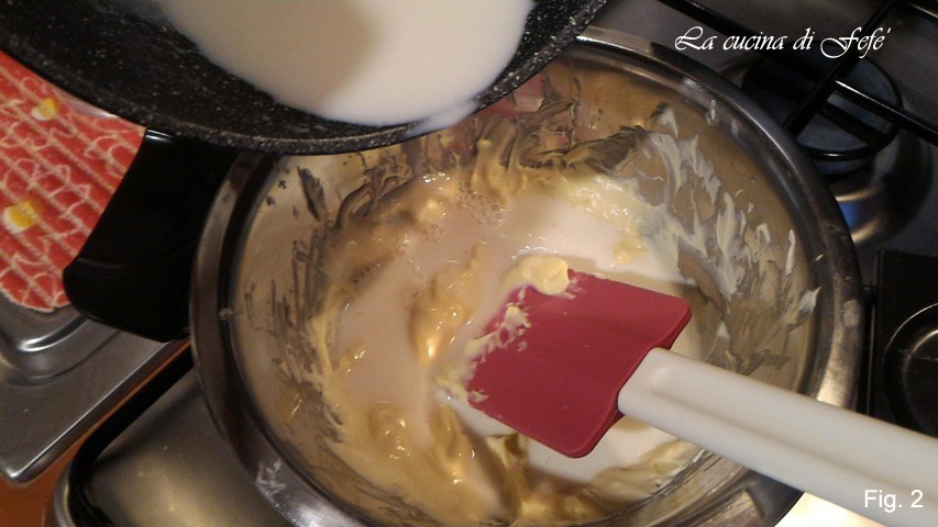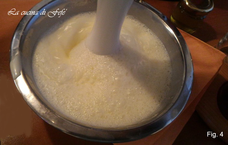 Mixen Sie mit dem Stabmixer, ohne Luft einzuarbeiten, für etwa 30“ (Abb. 4).