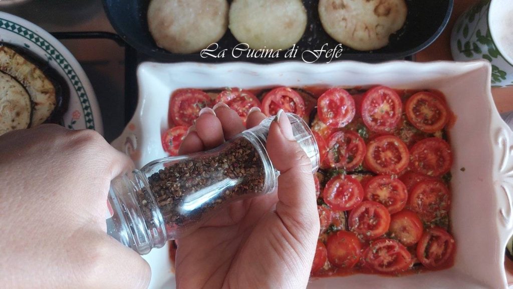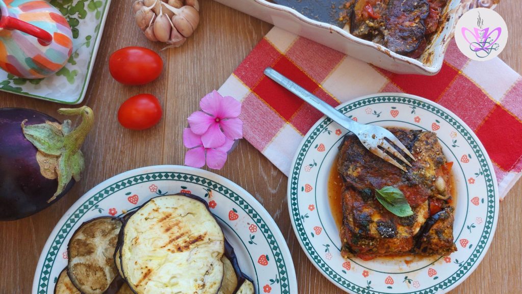Wir alle kennen die legendäre Parmigiana, ein Gericht, das aus Sizilien nach und nach im ganzen Land übernommen wurde und fast zu einem Symbol für Italienität geworden ist! Um es öfter zu genießen, versuche ich, es in einer leichteren Version zuzubereiten, indem ich gegrillte Auberginen anstelle von frittierten verwende! Ja, ich weiß, wahrscheinlich verändere ich es ein wenig, aber mir liegt mehr an der Gesundheit, und ich versichere Ihnen, dass die gegrillte Version, abgesehen davon, dass sie weniger kalorienreich und leichter verdaulich ist, dennoch sehr angenehm ist. Aber heute möchte ich keinen Aufsatz über die Vor- und Nachteile des Frittierens schreiben und Sie auch nicht vom ungesunden Aspekt überzeugen! Vielmehr möchte ich Ihnen erzählen, wie eine klassische Parmigiana eine qualitativ alternative Version werden kann, indem man Kühlschrankreste oder Überbleibsel anderer Rezepte verwendet! Das Ergebnis ist ein vegetarisches Hauptgericht, das bei Bedarf in kleine Quadrate geteilt, zu einem leckeren Vorspeise oder Fingerfood werden kann! Wenn Sie etwas Feta im Kühlschrank haben, der verbraucht werden muss, und etwas Pesto, das bald abläuft oder wie ich aus eigenen Vorräten, dann ist dieses Rezept genau das Richtige für Sie! Verschiedene Schichten puren Genusses, zwischen frischen Tomaten und Auberginen, einfach gewürzt mit Tomaten-Cherrysauce und Basilikumpesto, wobei der Mozzarella grob durch zerbröselten Feta ersetzt wird! Es wird Ihr Ass im Ärmel, denn wenn Sie es einmal probiert haben, können Sie nicht mehr darauf verzichten!