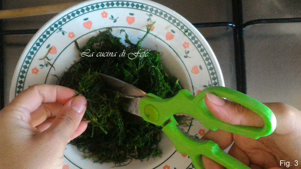 Beginnen Sie mit der Reinigung des wilden Fenchels*, indem Sie alle härteren Stängel entfernen und ihn dann mit Hilfe eines Siebs gründlich unter fließendem Wasser waschen.