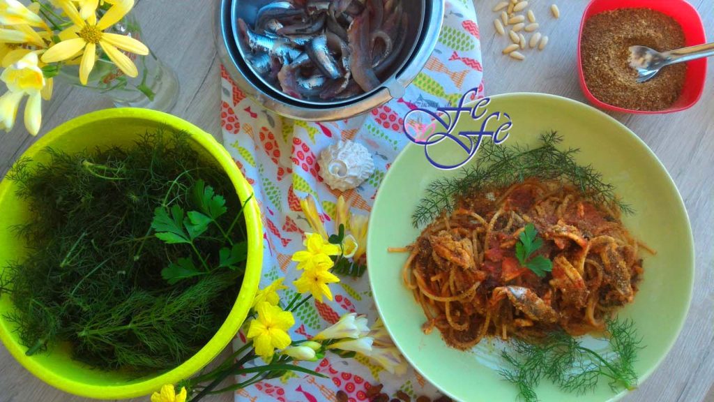Seit Tagen wollte ich dieses typische Gericht der kulinarischen Tradition von Catania zubereiten, aber ich konnte nirgendwo den wilden Fenchel finden, eine der entscheidenden Zutaten, um es zuzubereiten! Ihr könnt euch also meine Freude vorstellen, als es mir vor ein paar Tagen gelang, auf dem Obst- und Gemüsemarkt einen Bauern zu finden, der die letzten drei Bündel dieser wertvollen aromatischen Pflanze verkaufte! Natürlich habe ich alle gekauft, und neben der Pasta alla catanese habe ich damit viele andere leckere Sachen zubereitet, darunter das Fenchelpesto, eine wahre Köstlichkeit! Aber kommen wir zu uns, mit diesem Rezept, das mir von meiner lieben Oma Elvira überliefert wurde, die es oft als Sonntagsgericht auf den Tisch brachte. A pasta chi masculini nannte sie es cu finocchiettu rizzo, so nennen wir es! Es ist ein Muss, das mit Spaghetti, frischen Sardinen und wildem Fenchel zubereitet wird, das hier in Sizilien, ebenso wie im gesamten Mittelmeerraum, spontan wächst. Und gerade weil es keine menschliche Auswahl, sondern nur eine natürliche Selektion ist, wächst es dort, wo die Bedingungen optimal sind, ohne künstliche Beeinflussung durch den Menschen. Deshalb ist es eine wichtige Ressource für unseren Organismus, mehr als jedes andere Gemüse, auch wenn es in unserem Garten angebaut wird! Wenn wir dann noch bedenken, dass es auch sehr duftend ist und unseren Gerichten das gewisse Etwas verleiht, kann man es einfach nicht nicht verwenden! Sicher, ich weiß, dass es in anderen Teilen Italiens eine kaum bekannte und schwer erhältliche Pflanze ist, aber wenn ihr das Glück habt, sie zu finden, lasst sie euch nicht entgehen. Ein solches Gericht verdient es sicherlich, zum Weltkulturerbe zu werden, ich präsentiere es euch so, wie es meine Oma zubereitete, mit vielen Pinienkernen, Sultaninen und gerösteten Semmelbröseln zum Abschluss! Eine Delikatesse für wahre Kenner! Und während ich es zubereite, denke ich stolz an sie und an diese Tage voller Jugend und unbeschwerter Leichtigkeit!