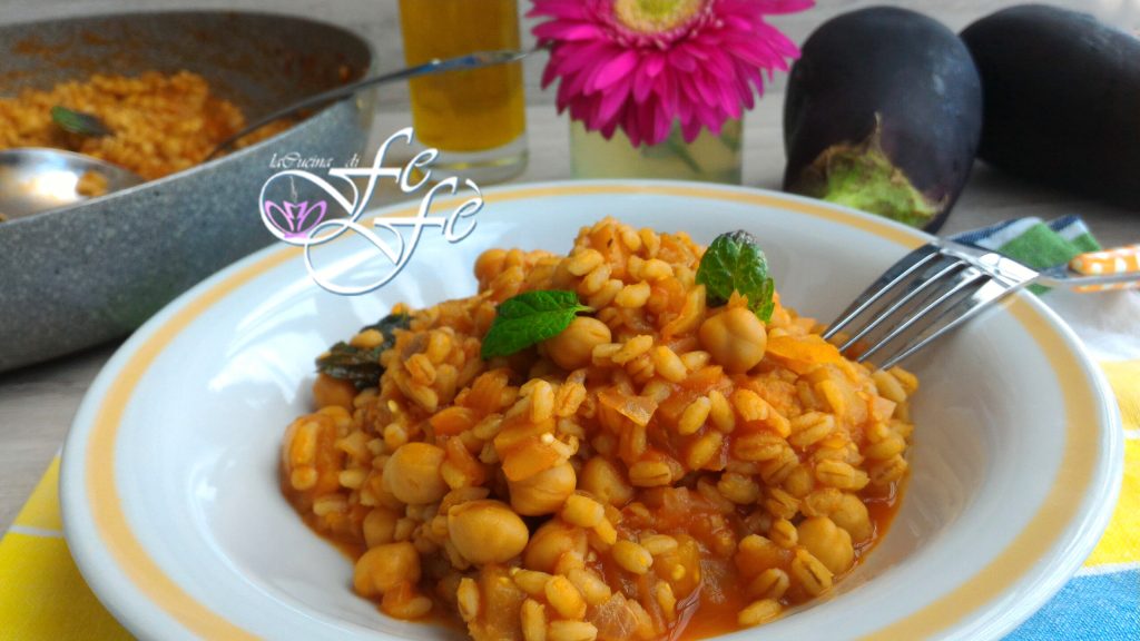 Kochen Sie die Perlgerste in einem Topf mit reichlich gesalzenem Wasser für ca. 30′. In der Zwischenzeit waschen Sie die Aubergine, schälen sie, entfernen den Stiel und schneiden sie in Stücke. Braten Sie sie in einem Wok mit einem Schuss Öl, einer Knoblauchzehe und wenig Wasser für 10′ bei geschlossenem Deckel, bis sie weich ist.