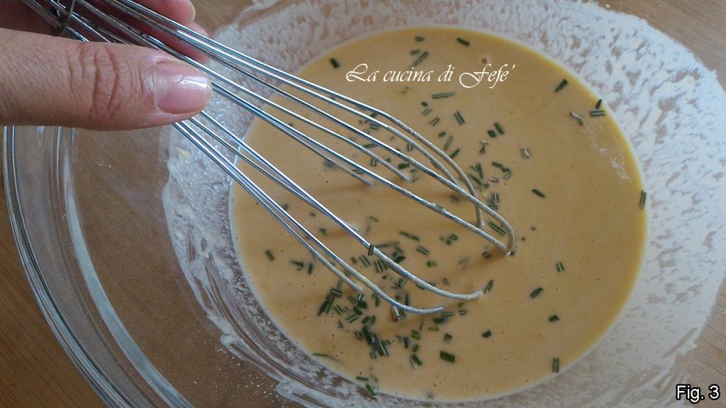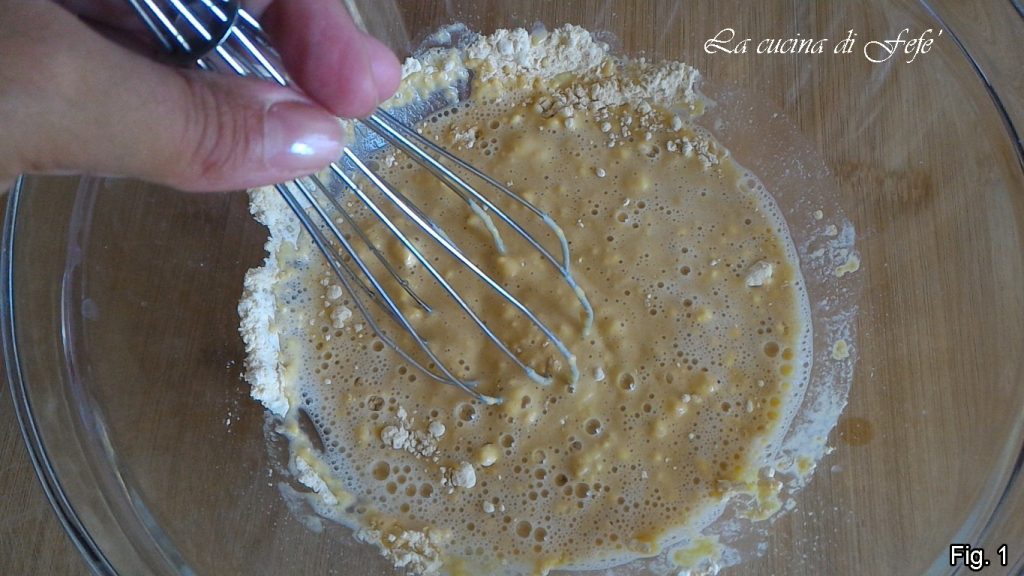 In einer großen Schüssel das gesiebte Kichererbsenmehl mit dem Wasser verarbeiten, mit einem Schneebesen (abb. 1).