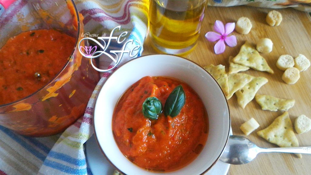 Unter den vielen Saucen und Dressings, die ich in diesen Jahren ausprobiert habe, ist diese frische, saisonale Paprikasauce sicherlich diejenige, die den unverwechselbaren Geschmack der mediterranen Aromen in sich birgt, verführerisch und duftend auch dank der Mischung einfacher und authentischer Gartenaromen! Hervorragend als Pastasauce geeignet, kann sie auch auf verschiedene Arten in der Küche verwendet werden, sogar auf Backwaren wie Bruschetta, Brotstangen oder Crostini gestrichen! Diese Sauce ist eine frische und schmackhafte Alternative zu den üblichen Saucen, perfekt, um Ihre Gäste zu überraschen und auch für die anspruchsvollsten Gaumen geeignet, da sie sich optimal für eine vegetarische, vegane, gluten- und laktosefreie Küche eignet! Kurz gesagt, gesund und schmackhaft.