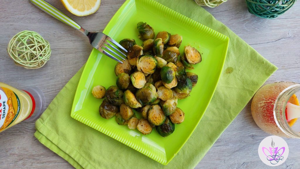 Im Winter liebe ich es, bei meinen Mittag- oder Abendessen die noch wenig bekannten Rosenkohl öfters einzuführen! Diese erstaunlichen Gemüsesorten sind tatsächlich ziemlich unterschätzt, denn obwohl sie oberflächlich gewürzt werden, neigen sie dazu, im Inneren weniger würzig zu sein, es sei denn, sie werden halbiert. Mit dem Trick, den ich dir zeige, erhältst du stattdessen eine köstliche Beilage und super aromatisch, aber vor allem extrem einfach zuzubereiten. Es reicht aus, sie zu reinigen, einige Minuten in Salzwasser zu blanchieren und die Garzeit im Ofen mit einem Senf-Dressing zu vervollständigen, das den Geschmack verstärkt. Sie sind hervorragend als Beilage zu zweiten Gängen von rotem oder weißem Fleisch, oder von Fisch. Ich habe sie in einem Teller serviert, der perfekt für ein leichtes Brunch auf Basis dieser außergewöhnlichen kleinen saisonalen Gemüse ist, die voller Vitamine und Mineralien stecken. Probiere sie auch aus!