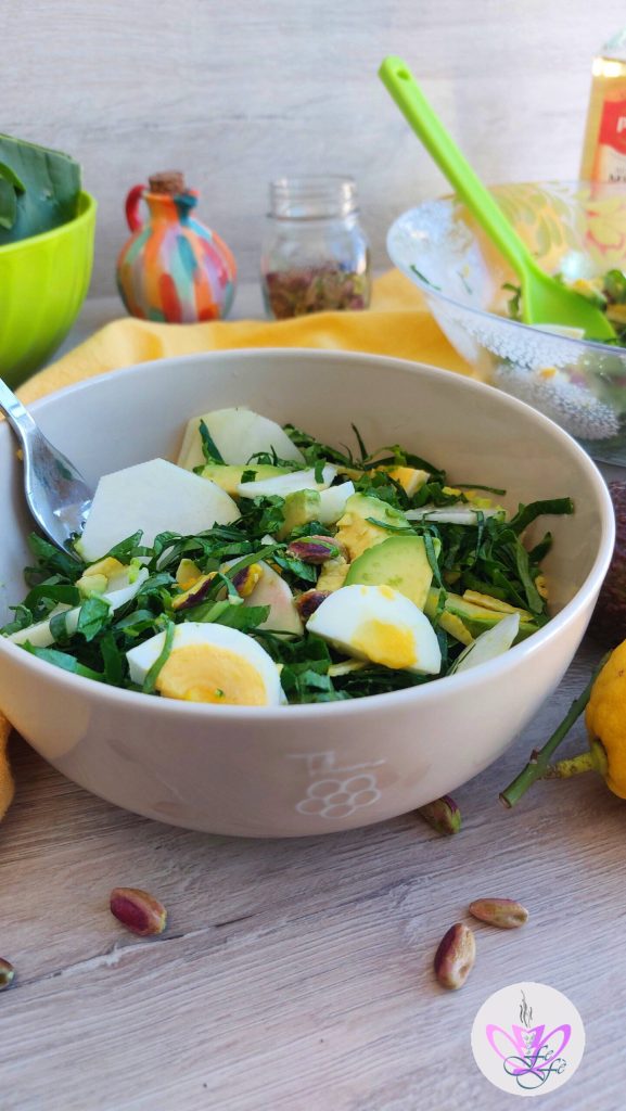 Wenn du aus Sizilien kommst und im Umland von Aci lebst, wirst du den Trunzu-Kohl aus Aci kennen, einen Kohlrabi, der entlang des gesamten Vorgebirges der Timpa in der Nähe von Acireale und den umliegenden Gebieten angebaut wird. Das Gebiet ist geprägt von vulkanischen Böden, die vielen einheimischen Gemüsesorten wie diesem hier Ursprung geben und daher reich an Mineralien und Vitaminen sind. Dank dieser Eigenschaften ist er mittlerweile ein Slow Food Presidio geworden, das eine kleine Gruppe von Produzenten einbezieht, die nachhaltige Anbaumethoden befolgen. Wenn du ihn also auf einem Obst- und Gemüsemarkt entdeckst, lade ich dich ein, ihn zu kaufen und in der Küche für viele Zubereitungen zu nutzen. Seine Vielseitigkeit ist tatsächlich maximal, denn jeder Teil ist essbar, einschließlich der Blätter, und du kannst ihn auch roh genießen, wie in diesem alten Bauerngericht, das ich gerne mit dir teile! Ein Salat, den meine Großmutter oft mit in Julienne geschnittenem Kohlrabi zubereitete und einfach mit Öl, Salz und Essig oder, alternativ dazu, Zitronensaft würzte. Er kann als Beilage oder als reichhaltiges Hauptgericht genossen werden, indem man in meiner Version hartgekochte Eier, Pistazien aus Bronte, Zedratzesten und Avocadoscheiben hinzufügt! Ich möchte betonen, dass es sich um eine moderne Überarbeitung handelt, die sich an neue Kombinationen anpasst, aber ich denke, du wirst sie zu schätzen wissen! Das Ergebnis ist erhaben!