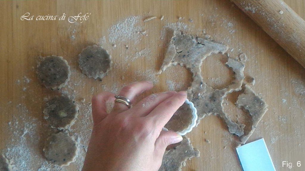 Rollen Sie den Teig auf einer bemehlten Arbeitsfläche auf 5 mm Dicke aus und stechen Sie die Kekse mit einem Ausstecher aus (Abb. 6).