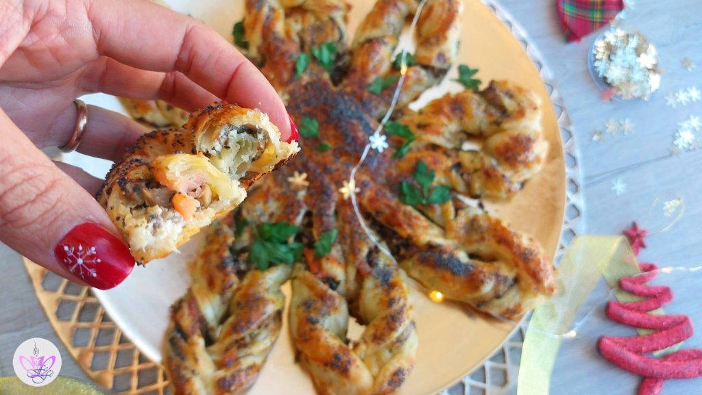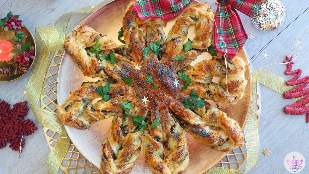 Entdecke das Rezept der salzigen Blätterteig-Schneeflocke, ein elegantes und schnelles Gebäck, perfekt als Weihnachtsvorspeise. Ideal für Buffets und Aperitifs!