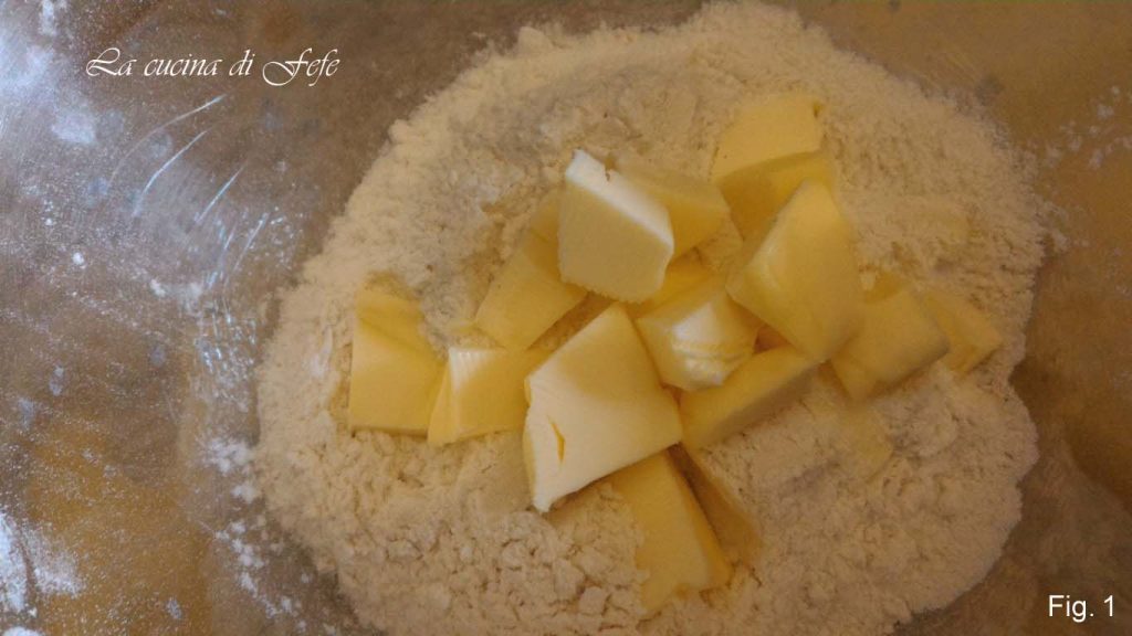 • Beginne mit der Zubereitung des Vanilleteigs. In einer großen Schüssel arbeite das Mehl mit der kalten Butter in Würfeln.