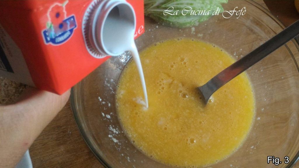 Fügt auch die Milch hinzu und vermischt alles mit einer Gabel.