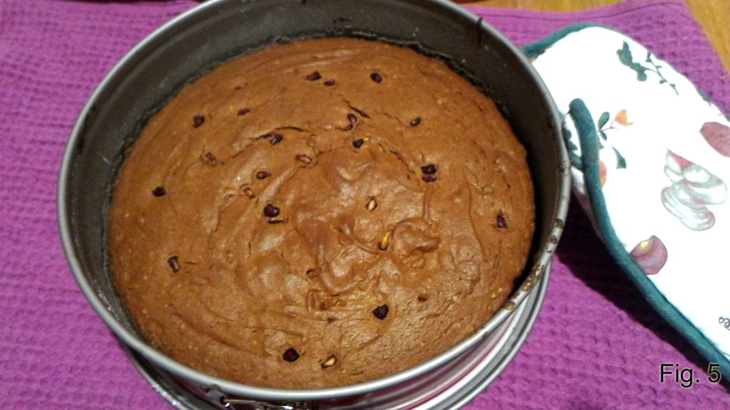 • Eine Backform einfetten und mit Mehl bestäuben, dann die Mischung hineingießen. Im vorgeheizten statischen Ofen bei 180°C für 35-40 Minuten backen. Die Stäbchenprobe gilt als Test. Sobald es fertig ist, aus dem Ofen nehmen und vollständig abkühlen lassen, bevor es aus der Form genommen wird.