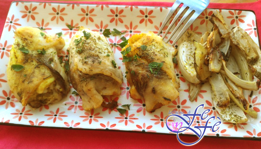 • Im vorgeheizten Ofen bei 180°C für 20 Minuten backen, dann wenden und nicht länger als weitere 5 Minuten garen. Auf einem Salatbett oder mit einer Fenchelbeilage servieren.