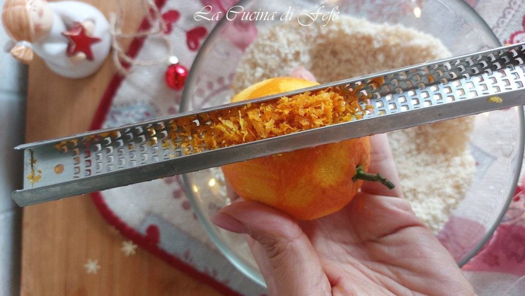 🟣**Achten Sie darauf, nicht auch den weißen Teil zu entfernen, der für den bitteren Nachgeschmack verantwortlich ist. Nach Belieben können Sie die Orangenschale mit einer anderen Zitrusfrucht ersetzen, zum Beispiel Zitrone oder Mandarine, oder den Teig mit Vanilleextrakt oder Zimtpulver aromatisieren.