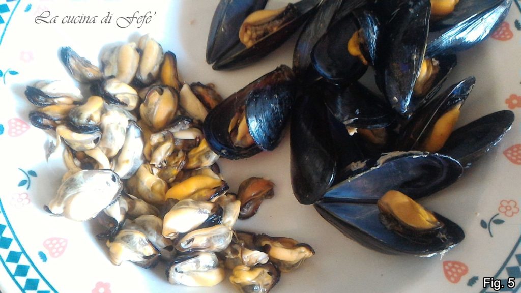 Entfernt die Muschelschalen, und bewahrt einige für die finale Dekoration auf (Abb. 5).