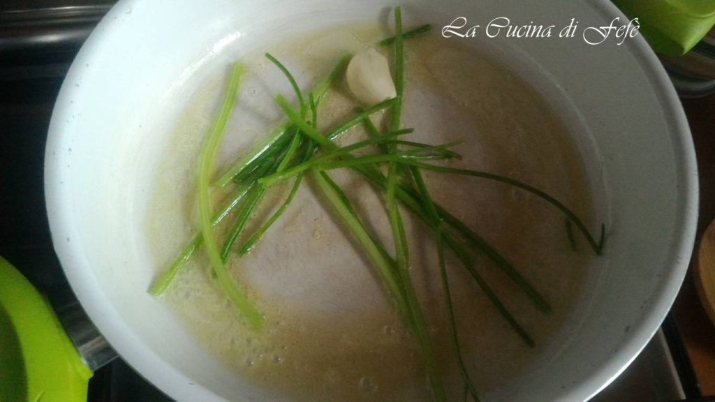 Geht zum Brokkoli über: Schneidet den Stiel ab, den ihr für andere Zubereitungen verwenden könnt, und entfernt die Röschen. Sehr klein schneiden, in meinem Fall habe ich auch die zarten Blätter behalten, da sie wild sind, und dann unter fließendem Wasser abspülen.