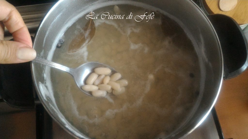 Kochen Sie weitere 10 Minuten bei schwacher Hitze, dann fügen Sie auch die zuvor abgetropften Cannellini hinzu, wobei Sie einige Schöpfkellen beiseite lassen, und lassen Sie alle Aromen weitere 5 Minuten verschmelzen.
