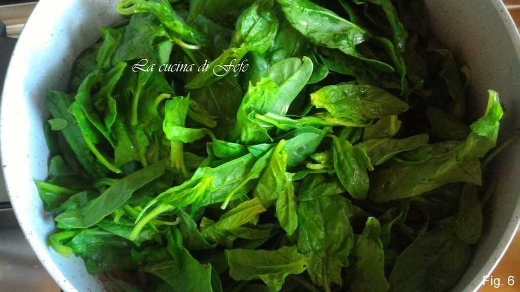 • Kurz vor dem Ausschalten fügen Sie die gut abgetropften Spinatblätter hinzu, würzen Sie mit Salz und setzen die Garzeit für weitere 10 Minuten fort (Abb. 6).