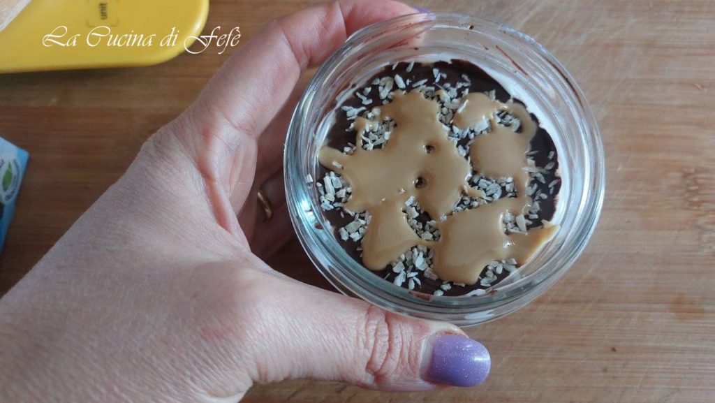• Bereite separat das finale Topping vor: in einem kleinen Schüsselchen vermenge den Kakao mit der Pflanzenmilch.
