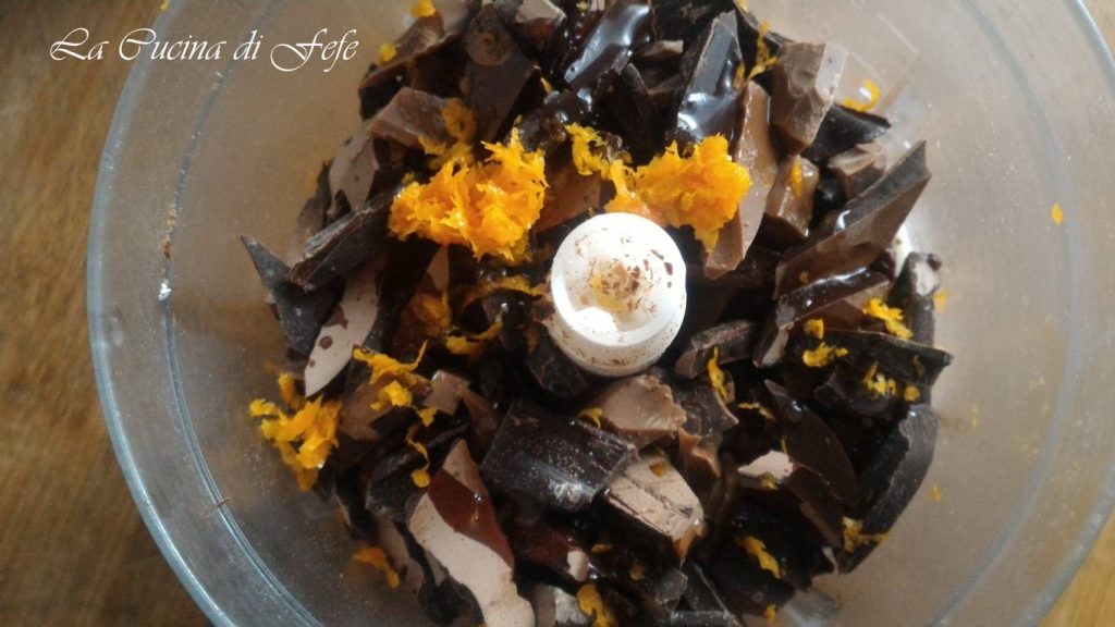 Gieße die so erhaltene Mischung in eine Kasserolle und erwärme sie bei niedriger Hitze für einige Minuten, bis die Schokolade geschmolzen ist.