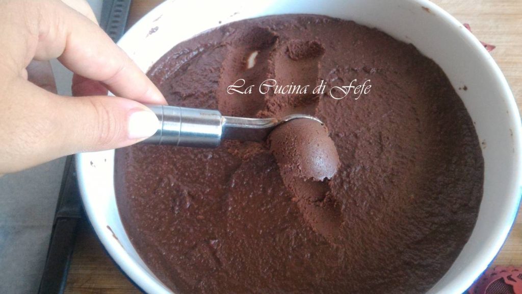 Forme sie schnell mit den Händen und lege sie nacheinander auf ein mit Backpapier ausgelegtes Backblech. Lege sie dann für ca. 60 Minuten in den Gefrierschrank.
