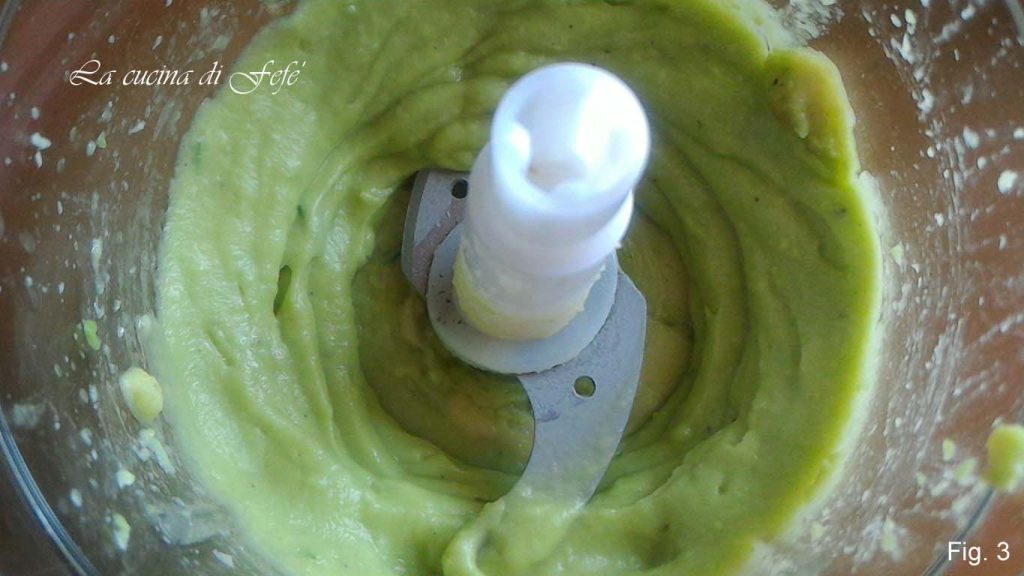 Teilen Sie die Avocado in zwei Hälften, entfernen Sie die Schale und den Kern. Schneiden Sie sie in Stücke und legen Sie sie in einen Mixer. Beträufeln Sie sie mit dem Saft einer halben Zitrone, geben Sie einen Schuss Öl dazu, reiben Sie etwas Ingwer darüber, fügen Sie eine Prise Salz und eine Prise Pfeffer hinzu (Abb. 2).